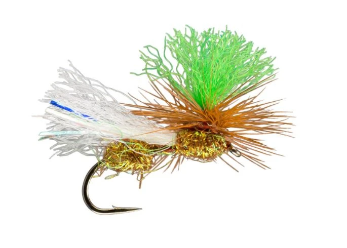 There are many hi-vis patterns in Orange or White, but some anglers struggle to see those colors in bright conditions – that’s where a green highlight can make the difference.  Most ant dries are fished during warm summer and fall days chances are good you’ll be in brighter conditions. Hook size is #14.