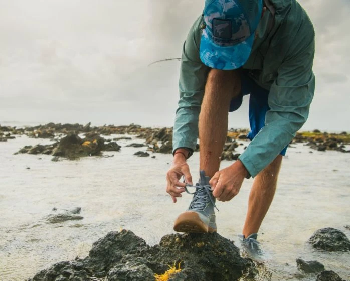 Nothing compares to stalking fish on saltwater flats. Our purpose-built Flats Sneaker is the go-to choice for roaming these skinny waters, blending the durability and support of a wading boot with the lightweight feel of a sneaker. Non-marking rubber outsoles deliver the traction you need on the boat or in the water, while Right Angle® footbeds and a mid-height design promote surefooted, all-day comfort.