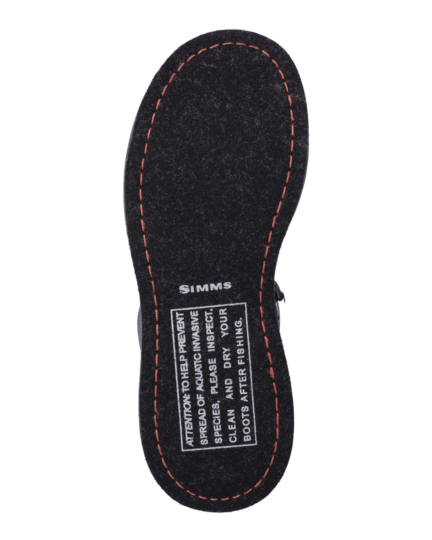 - 12mm felt outsole is fully compatible with Simms Hardbite Felt Studs
